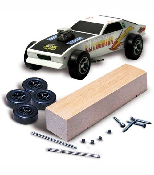 Each entrant starts from the same kit which comprises a block of balsa (originally this was pine), four wheels and something for axles. There is a small charge for this kit of parts of £3. Alternative kits are available on eBay and from blockcars but are typically a bit more expensive. Help from parents, siblings etc is positively encouraged. Entrants may add and subtract from this kit with their own materials, provided they keep within the Rules.