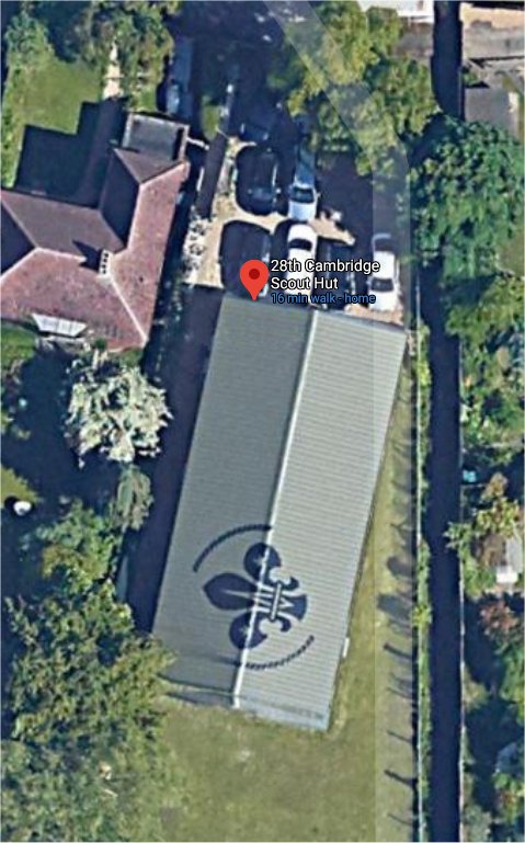 In 2017 the scouthut gained a fleur-de-lys on the roof so it can now be spotted from space